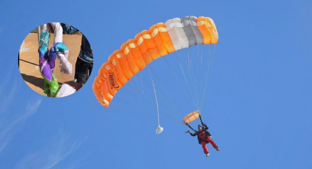 Faltaba poco para que su cuerpo tocara el suelo, sin embargo, a metros de este, Kevin logró abrir el paracaídas de emergencia, mismo que funcionó ralentizando la velocidad de su descenso.