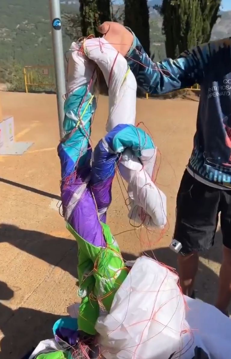 Al final del clip, se puede observar como intentan desenredar el paracaídas que casi le cuesta la vida al joven deportista.