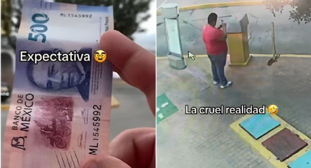 La persona difundió un video donde se observa cómo al finalizar de grabar, el tiktokero regresa y toma el dinero.
