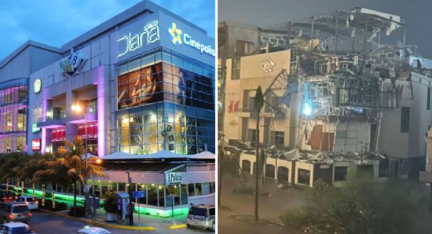 Acapulco. – Prueba de la fuerza con la cual el huracán Otis entró a Acapulco, Guerrero, la madrugada de este miércoles 25 de octubre está una fotografía que muestra el antes y después del centro comercial Galerías Diana.