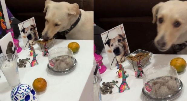 México.- Un perro se hizo viral en redes sociales, luego de haber sido captado comiéndose la ofrenda del altar de muertos que pidieron sus dueños.