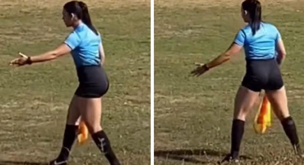 En el breve video de escasos 10 segundos, se puede observar cómo desempeña su papel de abanderada, corriendo de un lado a otro, donde es notable que ningún jugador se atreve a poner en duda sus decisiones en el campo de juego.