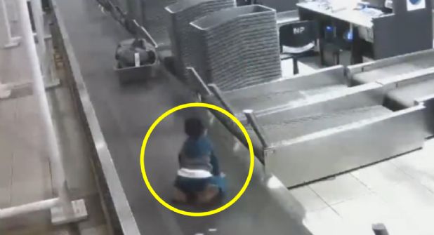 En ese instante, los trabajadores presentes en el área detuvieron las bandas de traslado de equipaje y uno de ellos subió para rescatar al niño.