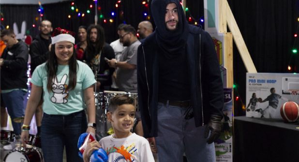 Así, Bad Bunny, ataviado de un abrigo negro, vaqueros y tenis, saludó primero a los niños con discapacidades especiales con abrazos, incluyendo uno que el propio artista cargó encima y que le entregó un canasto de baloncesto junto con una pelota.