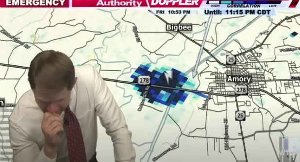 Jackson. – Mientras daba su reporte del clima, un meteorólogo de la cadena WTVA dedicó una plegaria en favor a las personas de Mississippi, Estados Unidos, pero sobre todo a aquellos que residen en Amory, ya que se encontraban expuestos a la llegada de un tornado.