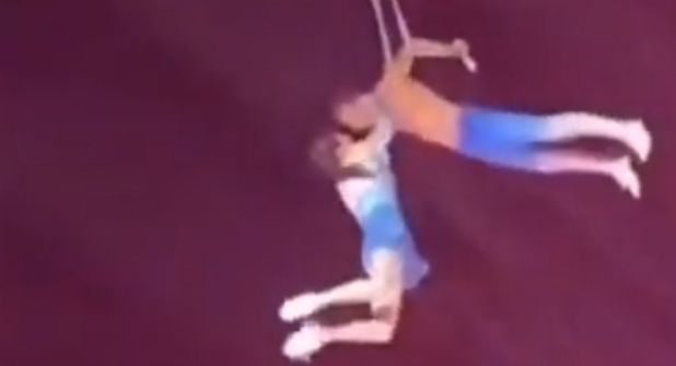 El video, que fue grabado por los mismos asistentes al show, también fue difundido a través de las redes sociales, y se puede ver a la trapecista y a su esposo de nombre Zhang en el momento donde se comienzan a elevar con ayuda de una grúa.