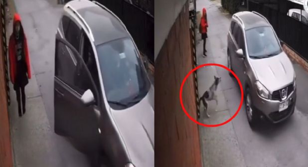 Al momento de que el secuestrador iba a poner un pie fuera del automóvil, un pequeño canino aparece y se coloca frente a la puerta del copiloto comenzando a ladrar.