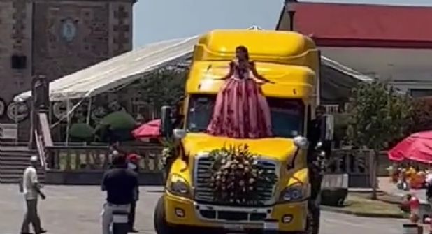 La chica identificada como Nataly Gutiérrez se encontraba llegando a los alrededores de la Parroquia de Santiago Apóstol Tianguistenco junto a sus chambelanes, quienes iban con ellas en las puertas de los costados del tráiler.