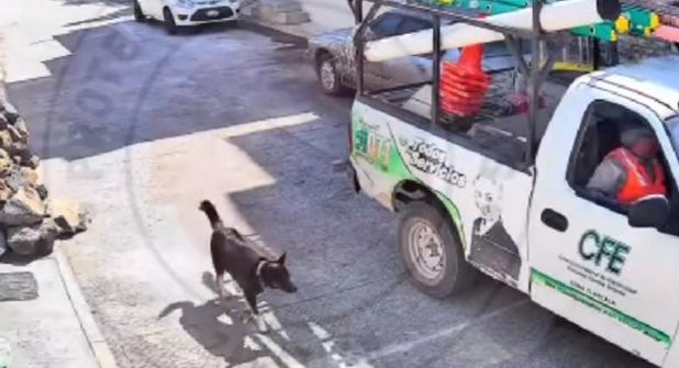 Zacatlán. – Cámaras de seguridad colocadas en la colonia La Estrella, Zacatlán, Puebla, registraron el momento donde dos trabajadores de la Comisión Federal de Electricidad (CFE) agreden a un perrito que caminaba por la calle.