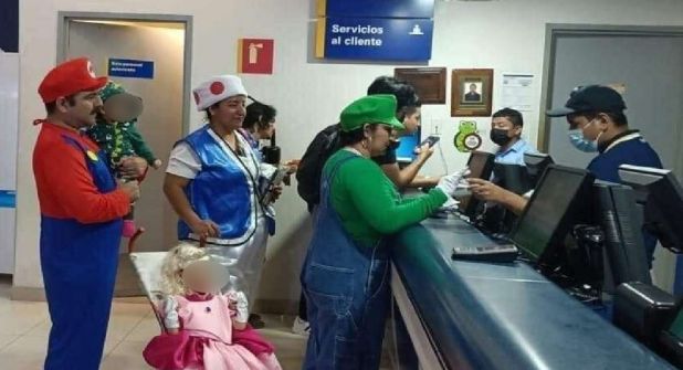 Chiapas.- Los mexicanos no dejan de sorprender gracias a su ingenio en momentos especiales. En esta ocasión una familia, aparentemente originaria de Chiapas, decidió disfrazarse de los personajes de Mario Bros para acudir al cine y disfrutar de la película.