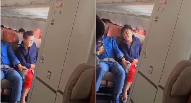 En la grabación se ve a dos pasajeros que llevaban puestos sus cinturones de seguridad, temerosos por la situación y haciendo muecas de dolor.