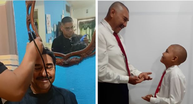 Fue en ese momento que Ángel Mogollón, quien da clases en la escuela Año de las Américas, decidió raparse para que el estudiante se animara y no se sintiera incómodo.