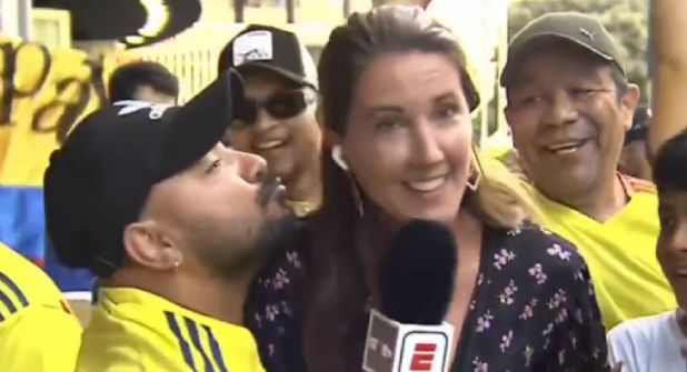 España.- Durante una transmisión en vivo antes del partido amistoso entre Colombia e Irak en el Estadio Mestalla de España, la periodista española, Gemma Soler, fue víctima de acoso por parte de un aficionado, el cual intentó robarle un beso a la fuerza.