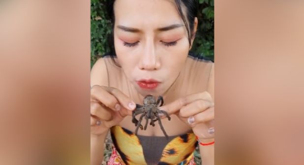 En la grabación, se puede ver a esta valiente protagonista comiendo alrededor de una docena de tarántulas de gran tamaño, generando conmoción entre los internautas.