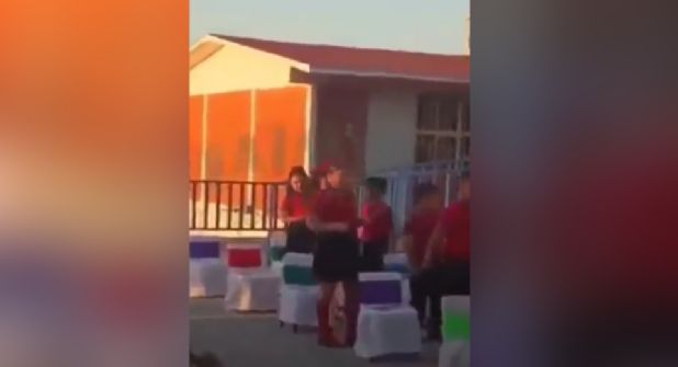 El impactante mensaje dejó atónitos a los presentes, y los padres de familia reaccionaron con sorpresa, comenzando a gritar y chiflar, mientras algunos de los niños presentes se contagiaron de la tensión y estallaron en risas nerviosas.
