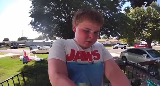 De nombre Shayden Walker, el menor, con su camiseta de la película ‘Tiburón’, acudió de casa en casa hasta que se encontró con un hombre llamado Brennan Ray, que captó el momento en video, mismo que fue colgado en redes sociales, y que ha alcanzado gran popularidad.