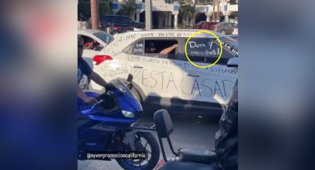 Las palabras escritas presumiblemente por la cónyuge en el vehículo se destacan con mayor claridad, dado que se trata de una camioneta de tonalidad blanca.