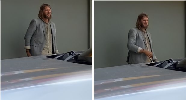 En la grabación se ve al hombre vestido con un saco gris y una camisa color piel, mientras luce una cabellera larga y rubia, además de una abundante barba.