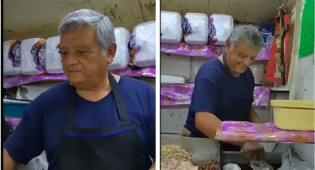 Los usuarios de las redes sociales señalan que el taquero tiene facciones muy similares a AMLO; desde la silueta de la cara hasta el cabello blanco.