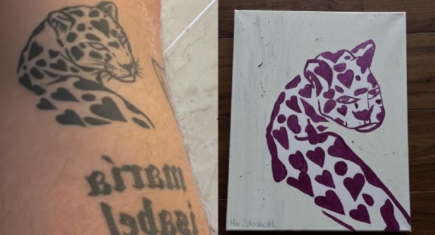 Ante esto, un usuario compartió a través de sus redes sociales compartió una fotografía donde mostraba su tatuaje que era de un jaguar con corazones; mismo diseño de unos de los cuadros que Mar tenía a la venta.