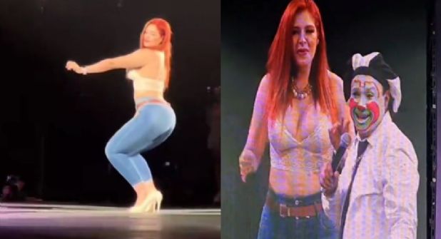 La joven deslumbró el escenario con sus movimientos de cadera, incluyendo al comediante, quien, después de elogiarla una vez más, hizo una broma dirigida a aquellos que asistieron con pareja, destacando que se estaban perdiendo la oportunidad de admirar la belleza de la joven regia.