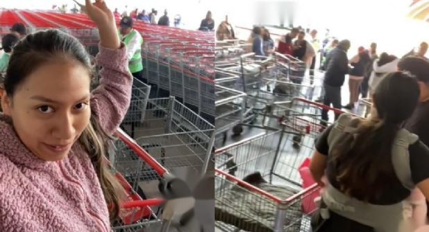 La usuaria llegó a las 6:40 horas, y logró ser la numero uno de la fila, además en el video se observa que ya había más personas detrás de ella formadas con su carrito, pese a que el establecimiento abre sus puertas a las 10:00 horas.