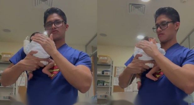 El profesionista, quien fue identificado como Adolfo Marez, subió a su cuenta de TikTok un video en el que logró dormir al bebé entonando la canción de' Chupón'.