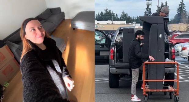 En la grabación, que se hizo muy viral en redes donde alcanza los más de 2.8 millones de vistas, se puede apreciar cómo Nguyen sube a una camioneta el sofá de color gris, grande y en forma de L para devolverlo en la sucursal que lo compró.