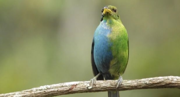 Bogotá. - Un grupo de investigadores avistó en Colombia un raro ejemplar de mielero verde silvestre (Chlorophanes spiza) mitad macho y mitad hembra que presentaba el plumaje típico de ambos sexos, el segundo avistamiento de un pájaro así pero el primero en cien años, según la investigación.