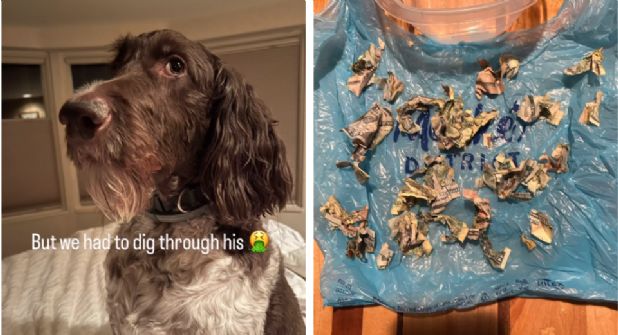 La pareja esperó que el perro vomitara los billetes, e hiciera sus deposiciones para poder rescatar una parte de lo perdido.