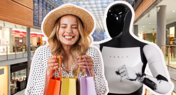 ¡El futuro ya está aquí! Una mujer se viralizó tras ir de compras con sus robots en la alta tecnología de Tesla.
