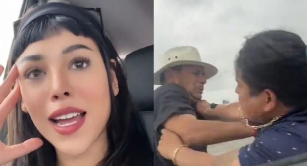 Sin profundizar en lo que desencadenó la pelea entre los dos comerciantes, la actriz muestra imágenes de la violenta confrontación entre los hombres. En su intento por agredirse mutuamente, se acercaron al vehículo en el que viajaban la cantante y su novio.