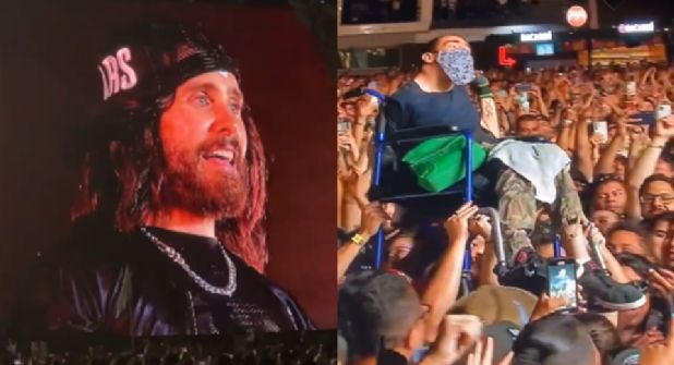 Luego de preguntarle si quería subirse al escenario, gente tras bastidores llevó al chico al punto donde estaba la agrupación y Leto le preguntó cómo estaba.