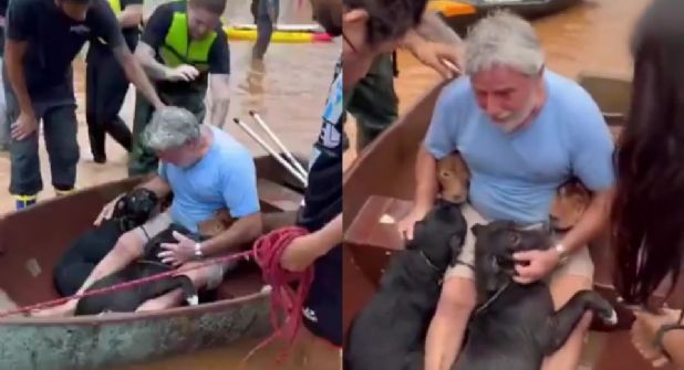 “Un hombre trasladó a los voluntarios que lo rescataron. Llegó diciendo que necesitaba recoger a sus 4 hijos, pero tenía que acompañarlos. En la situación, el hombre tenía una bolsa de colostomía y no podía mojarla. Cuando regresó, los 4 niños eran 4 cachorros”, se lee en el post del mencionado medio.