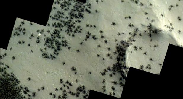 De acuerdo a la NASA y la Agencia Espacial Europea, estas misteriosas figuras no son seres vivos, sino formaciones geológicas que se forman durante la primavera marciana.