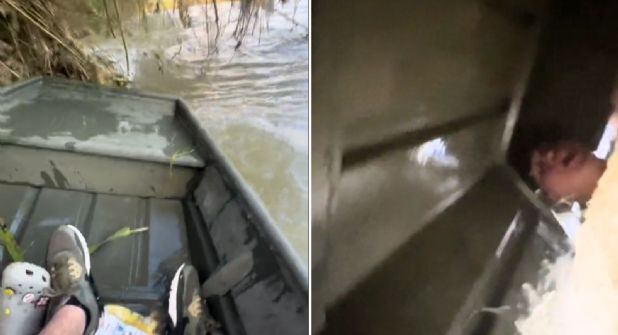 A medida que seguían adelante, el río se volvía más fuerte. Las olas golpeaban con fuerza su pequeña lancha. En minutos, lo que algunos temían sucedió.