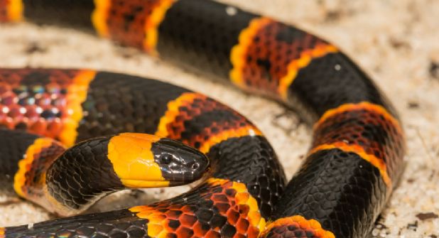 Otra especie que es muy común, es la serpiente Coralillo (Micrurus spp.), muy llamativa de ver por su belleza, ya que presenta anillos de colores brillantes, como el rojo, negro y amarillo, pero no te dejes engañar, ya que es extremadamente venenosa.