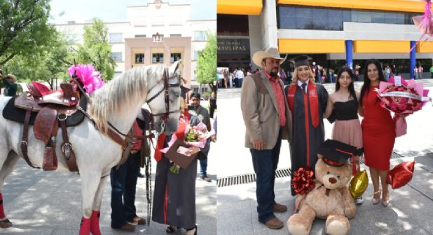 Tamaulipas.- Un padre de familia se hizo tendencia en redes, tras llegar a la graduación de su hija con un caballo como regalo por concluir sus estudios, en Tamaulipas.
