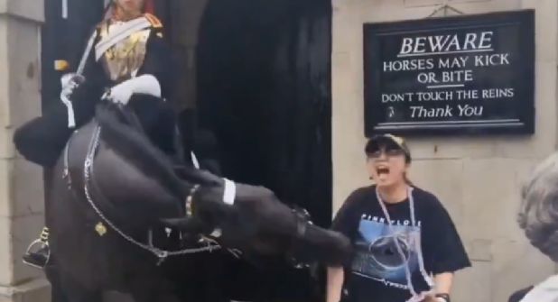 Reino Unido. – Una turista ignoró las advertencias y se acercó de más a uno de los caballos de la Guardia Real, en Reino Unido, que al sentirse incómodo le mordió el brazo derecho en frente de una gran cantidad de personas.