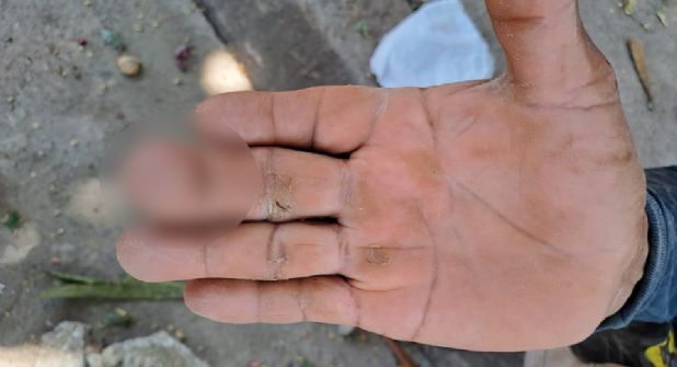 Con una fotografía de una mano con callos y dedos hinchados, el hombre señaló que sus manos no son de señorita por lo que prefirió seguir laborando con escaso equipo de protección.