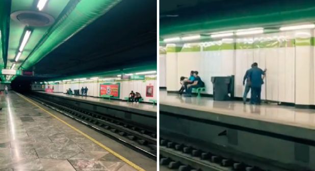 El clip compartido por el usuario de TikTok, sergioph2806, muestra cómo dos personas trabajadoras de este sistema de transporte colectivo se acercan a una de las paredes verdiblancas, ello para luego abrir un compartimento al cual ingresaron.