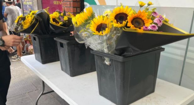 Para las 16:00 horas el señor Sergio, tenía 80 ramos vendidos con girasoles y rosas con precios desde 100 hasta 300 pesos.