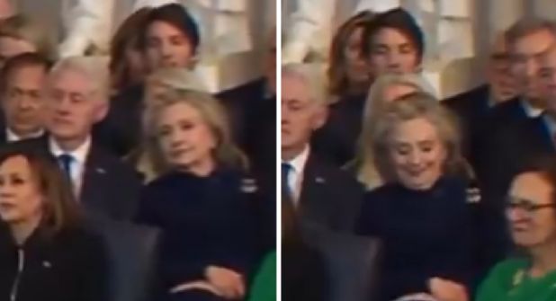 La reacción de Hillary, quien estaba sentada junto al expresidente y también su esposo, Bill Clinton, ya trasciende en redes sociales, con videos que se han vuelto virales.