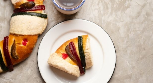 La Rosca de Reyes es un pan elaborado con una masa suave y decorado con frutas secas y cristalizadas contiene en su interior una figura pequeña del Niño Jesús.