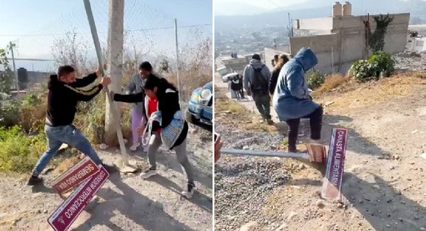 Lo anterior no fue del agrado de un gran número de vecinos, que al observar la instalación de estos señalamientos, salieron y los maltrataron de tal manera que se quedaron sin nomenclaturas visibles.