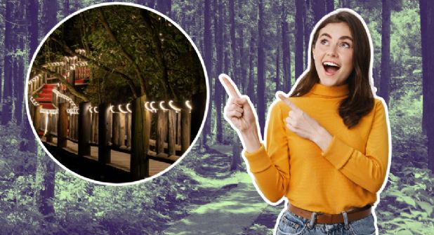 Este sendero de madera, rodeado por el bosque y con vistas espectaculares, se transforma cada noche en un recorrido mágico gracias a cientos de luces que resaltan el paisaje nocturno.
