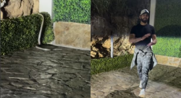 En el video que publicó, se puede ver cómo el influencer se acerca con cautela al reptil mientras graba la escena con su celular.