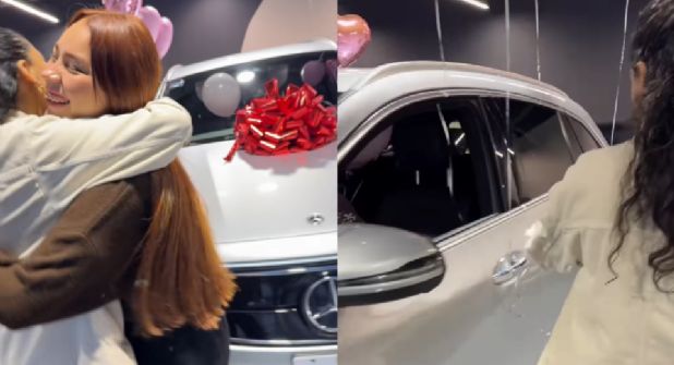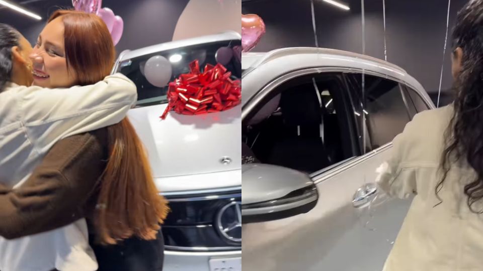 La grabación muestra el momento en el que ambas se encuentran, la sorpresa de la madre al ver el vehículo y el abrazo que comparten después de la entrega.