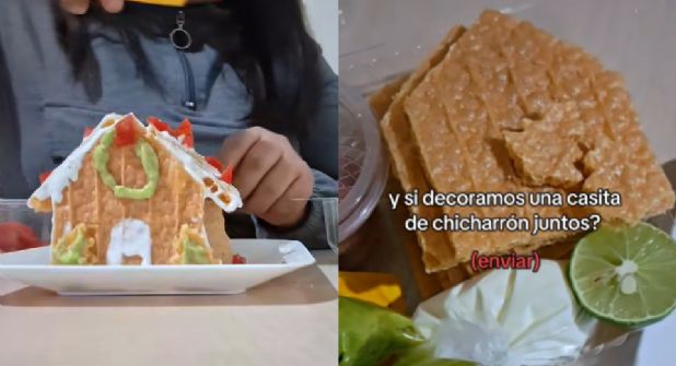 Sin embargo, en TikTok surgió una propuesta que llevó esta costumbre a un giro totalmente mexicano: una casita navideña hecha con un chicharrón preparado.
