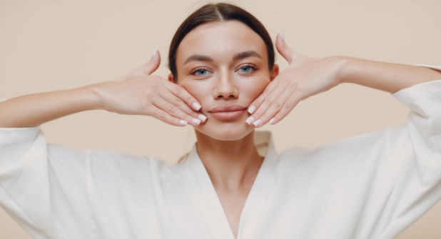 Al igual que el ejercicio de los ojos, deberás masajear con toda la palma de tu mano desde la parte baja de la boca pasando por los pómulos con un masaje hacia arriba y pasando por detrás de la oreja lentamente hasta el cuello.